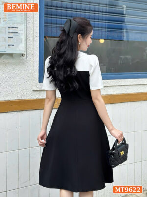 Đầm thiết kế BEMINE cổ sơ mi ngực đính viền ren MT9622 – Thời trang nữ tính