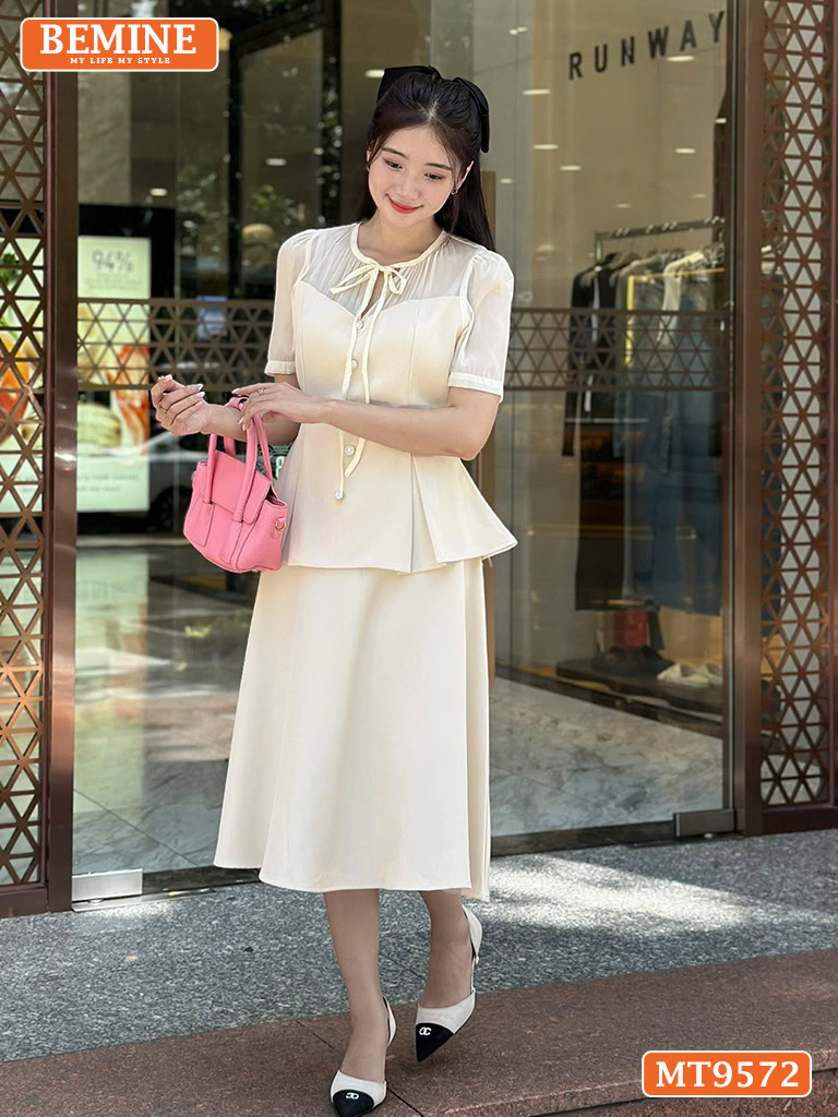 Đầm thiết kế BEMINE cổ tròn có dây nơ MT9572 – Lựa chọn tuyệt vời đem lại vẻ thanh lịch và tinh tế.
