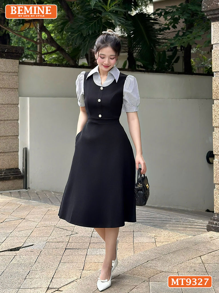 Đầm thiết kế cổ sơ mi kiểu giả yếm MT9327 là sự kết hợp hoàn hảo giữa phong cách hiện đại và nét thanh lịch truyền thống, được thiết kế độc quyền bởi BEMINE dành cho phụ nữ công sở.